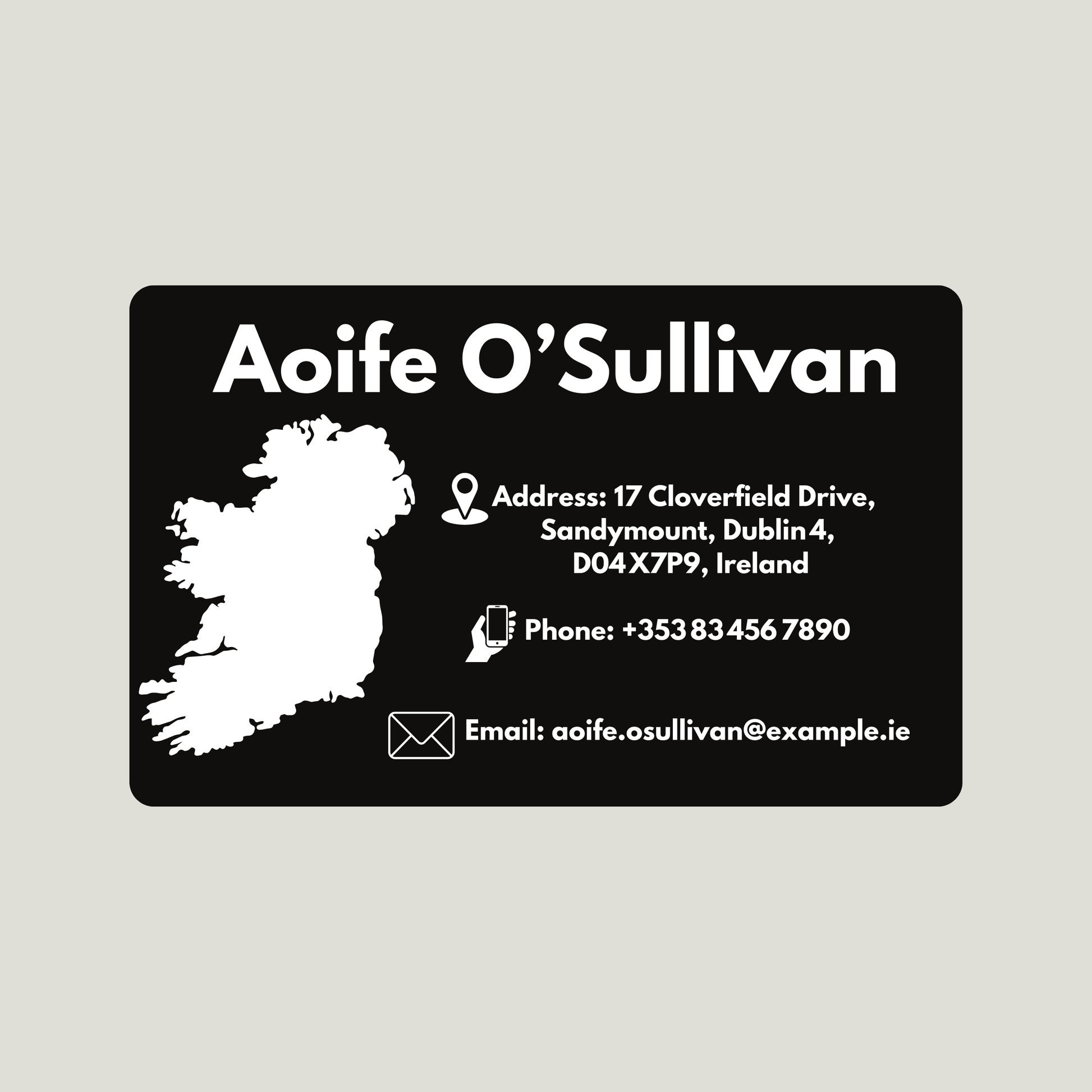 FREE SHIPPING ANY WERE IN IRELAND AND EUROPE. Custom Luggage Tag — your name, your trip, zero mix-ups Skip the marker scribbles and flimsy paper sleeves. Our metallic-aluminium tag is laser-etched with your personal details in razor-sharp text that never fades, smears, or rubs off—so your bags speak for themselves from check-in to carousel.
